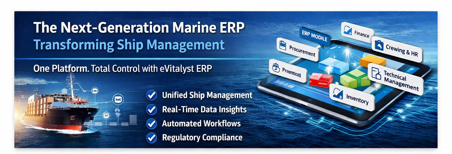 The maritime industry is moving towards digital transformation, and adopting a robust marine ERP and vessel PMS system is no longer optional—it is essential. eVitalyst ERP stands out as a comprehensive shipping ERP solution that combines integration, automation, and intelligence in one platform.